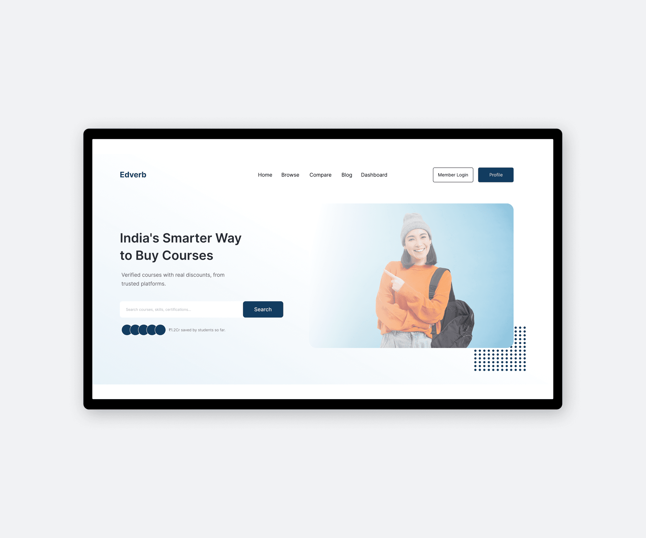 Designed an edtech course discovery platform from 0→1, focusing on clarity, filtering, and decision-making at scale.