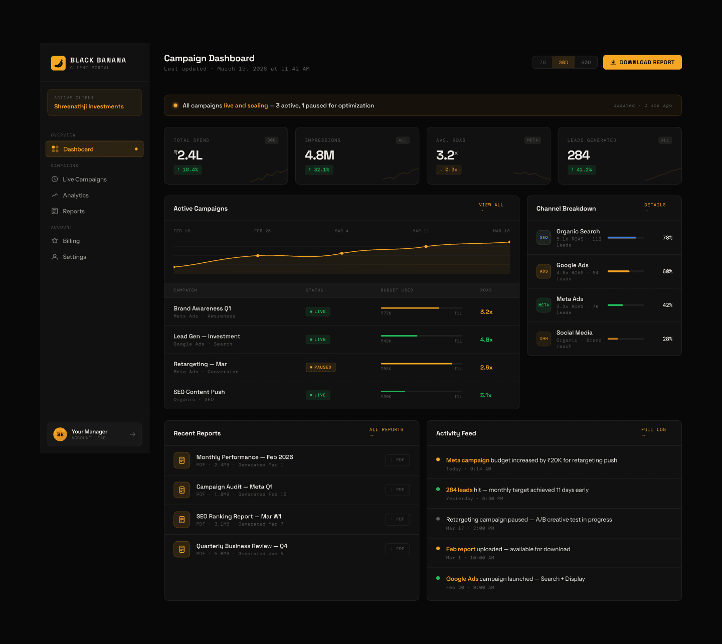 The campaign dashboard gave clients a sense of control and transparency they hadn't experienced with previous agencies
