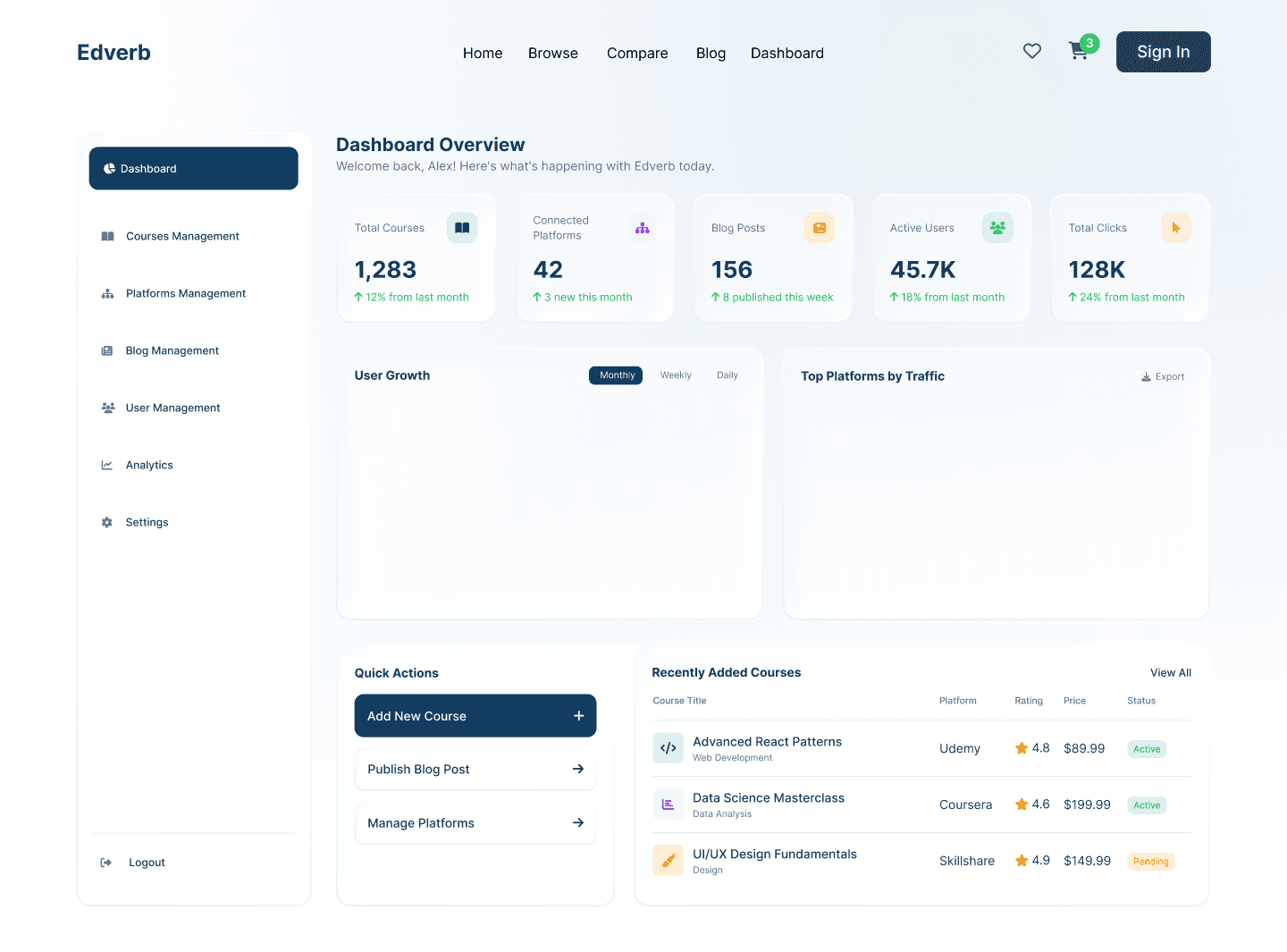 Most users quickly understood the purpose of Edverb as a course comparison platform, not a learning provider