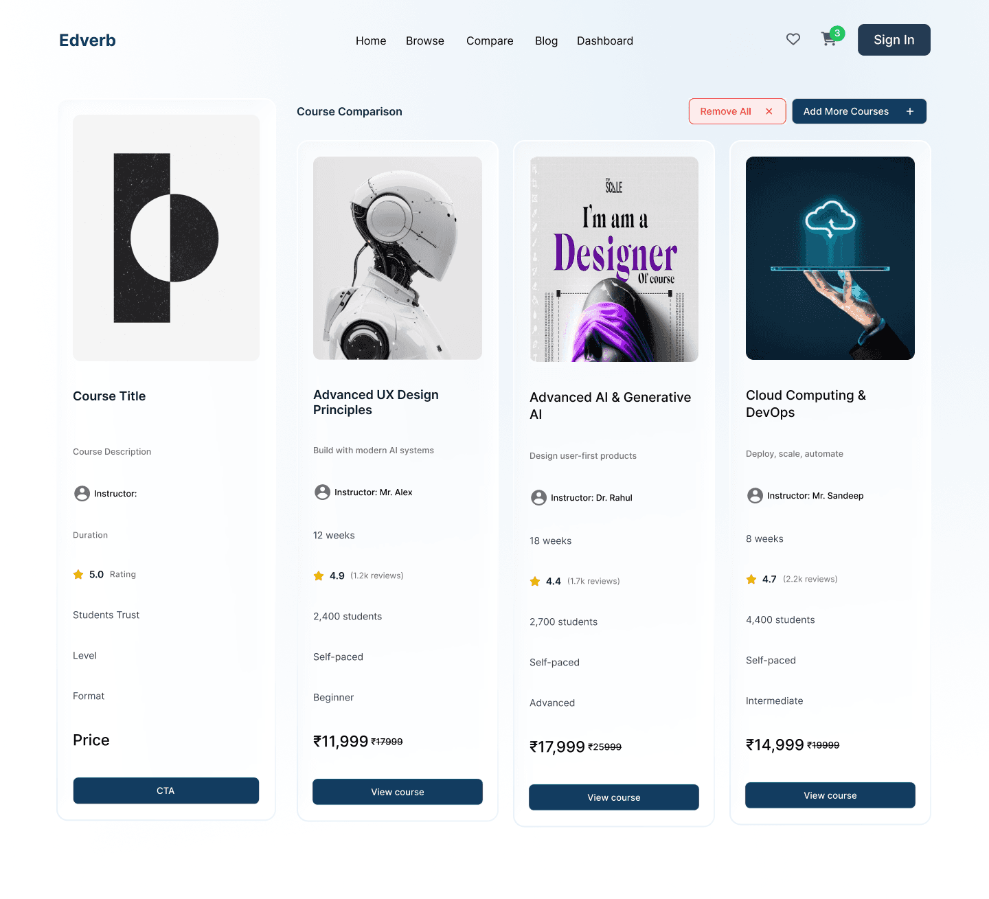 Designing Edverb reinforced how critical trust and clarity are in learning platforms. Learners don’t want more options — they want confidence in their choice. Clear comparisons, transparent pricing, and verified information mattered more than visual novelty.